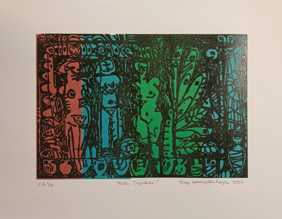 Kuzey Kıbrıs Türk Cumhuriyeti’nin Girne kentinde “3. Uluslararası Kültürel Mirası Koruma ve Araştırma Sempozyumu” kapsamında 25 Şubat 2026 tarihinde açılan “Zamanın Katmanları” baskıresim sergisine öğretim üyelerimiz, öğrencilerimiz ve mezunlarımız yapıtlarıyla katıldılar. Küratörlüğünü sanatçı Ayhatun Ateşin'in yaptığı sergide, öğretim üyelerimiz; Doç. Umut Germeç, Doç. Ali Can Metin ve Doç. Ezgi Yemenicioğlu Negir, sanatta yeterlik öğrencimiz Gamze Yılmaz, mezunlarımız Enis Mâlik Duran, Esin Ok ve Cansu Yılmaz'ın çeşitli baskı teknikleriyle ürettikleri baskıresimlerinin yer aldığı sergiye KKTC'den sanatçılar da katıldı. Oldukça yoğun bir ilgiyle açılan sergi 25 Nisan 2026 tarihine kadar Girne Acapulco Otel'in sergi salonunda gezilebilecek.